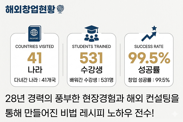 현지에서 응용 가능한 실전 100% 수제 레시피를 전수합니다!
